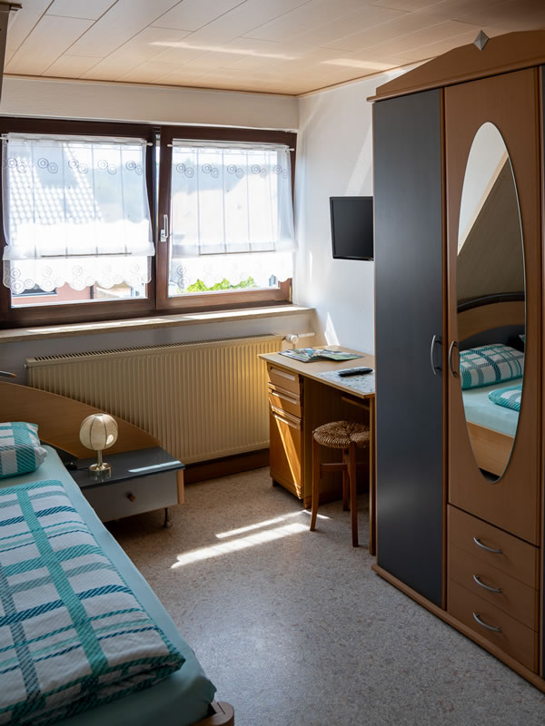 Dieses Gästezimmer befindet sich im 1. Obergeschoß. TV und Kühlschrank ist vorhanden. Handtücher und Badetücher werden grundsätzlich bereitgestellt. Das Zimmer hat ein eigenes Badezimmer mit Dusche und WC. Das reichhaltige Frühstück wird an Ihr Zimmer serviert.