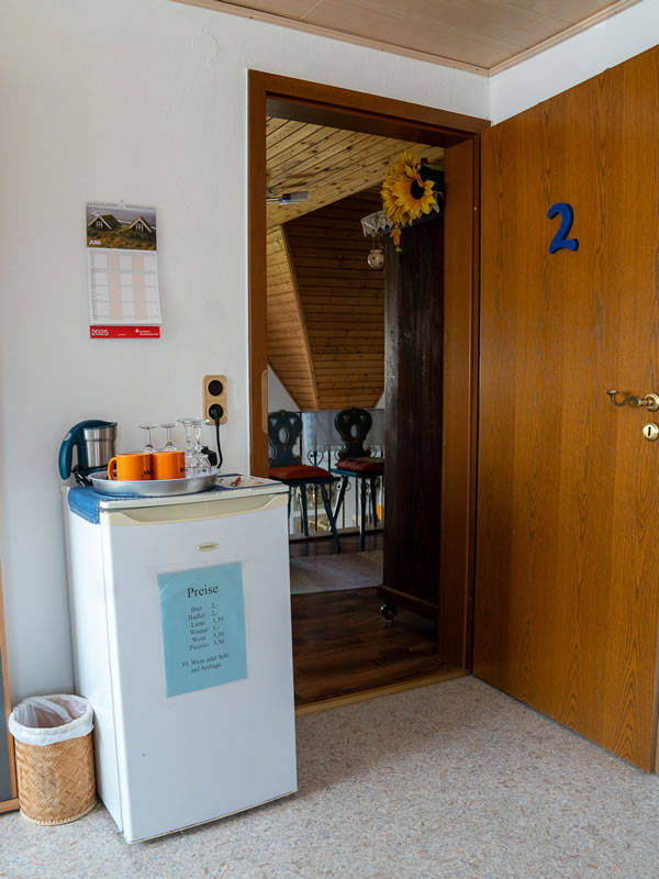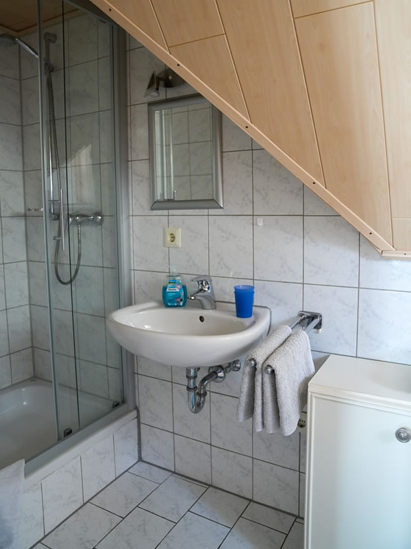 Dieses Gästezimmer befindet sich im 1. Obergeschoß. TV und Kühlschrank ist vorhanden. Handtücher und Badetücher werden grundsätzlich bereitgestellt. Das Zimmer hat ein eigenes Badezimmer mit Dusche und WC. Das reichhaltige Frühstück wird an Ihr Zimmer serviert.